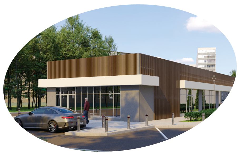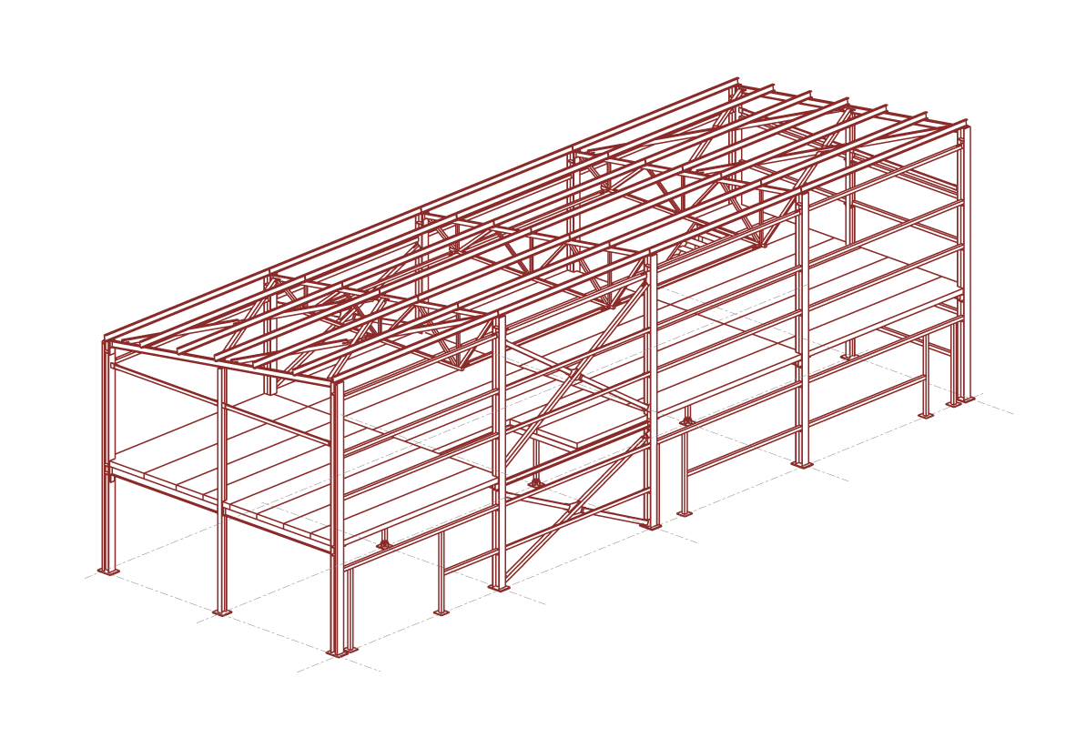 Проведена корректировка проектной документации, подготовлен пакет необходимых согласований и получено Разрешение на строительство. Здание состоит из разноуровневого металлического каркаса с ограждающими конструкциями из сэндвич-панелей.